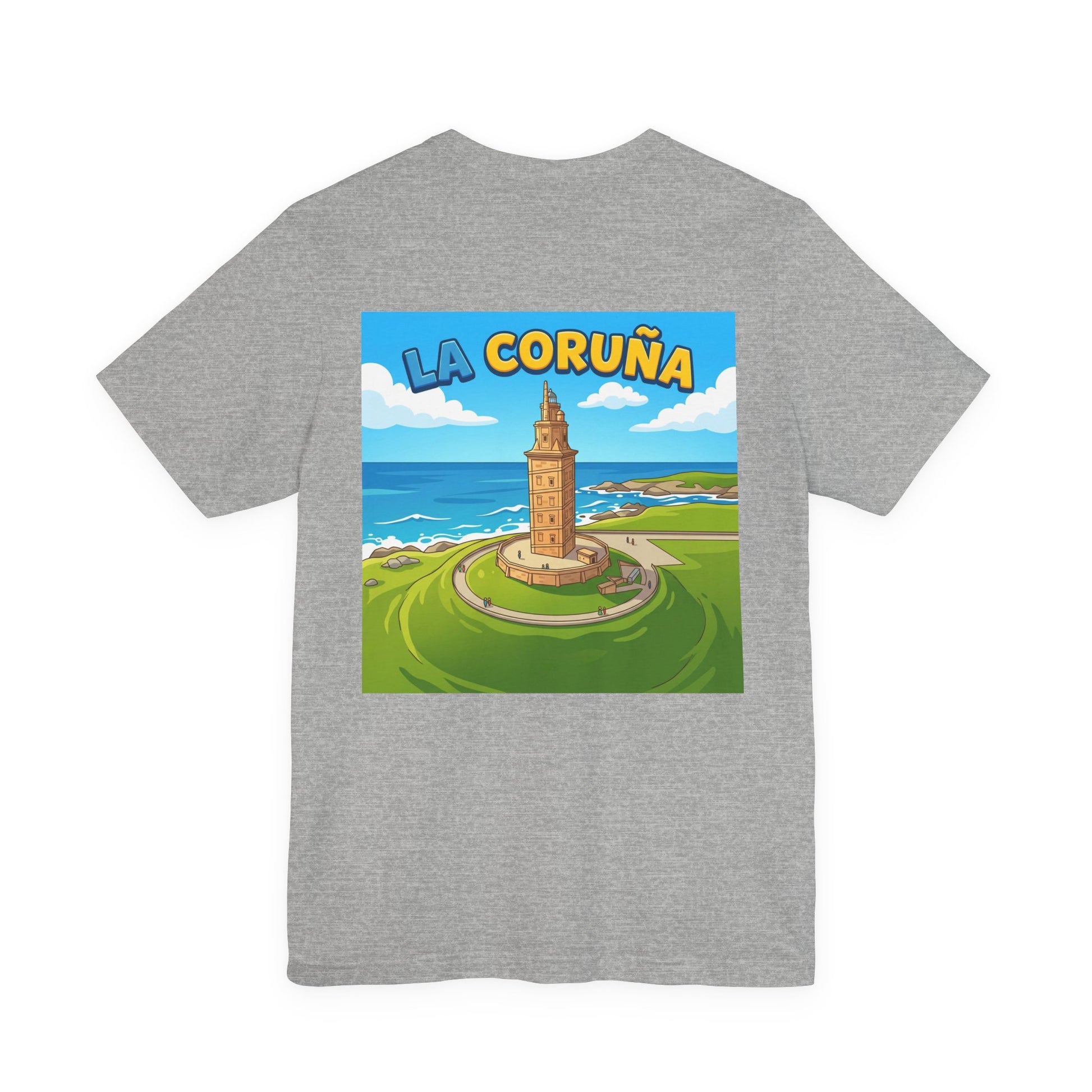 Celebrate the historic maritime heritage of Spain with this La Coruña Tower T-Shirt featuring a striking back print inspired by the iconic Tower of Hercules. Perfect for travelers, sea lovers, and admirers of ancient coastal landmarks.