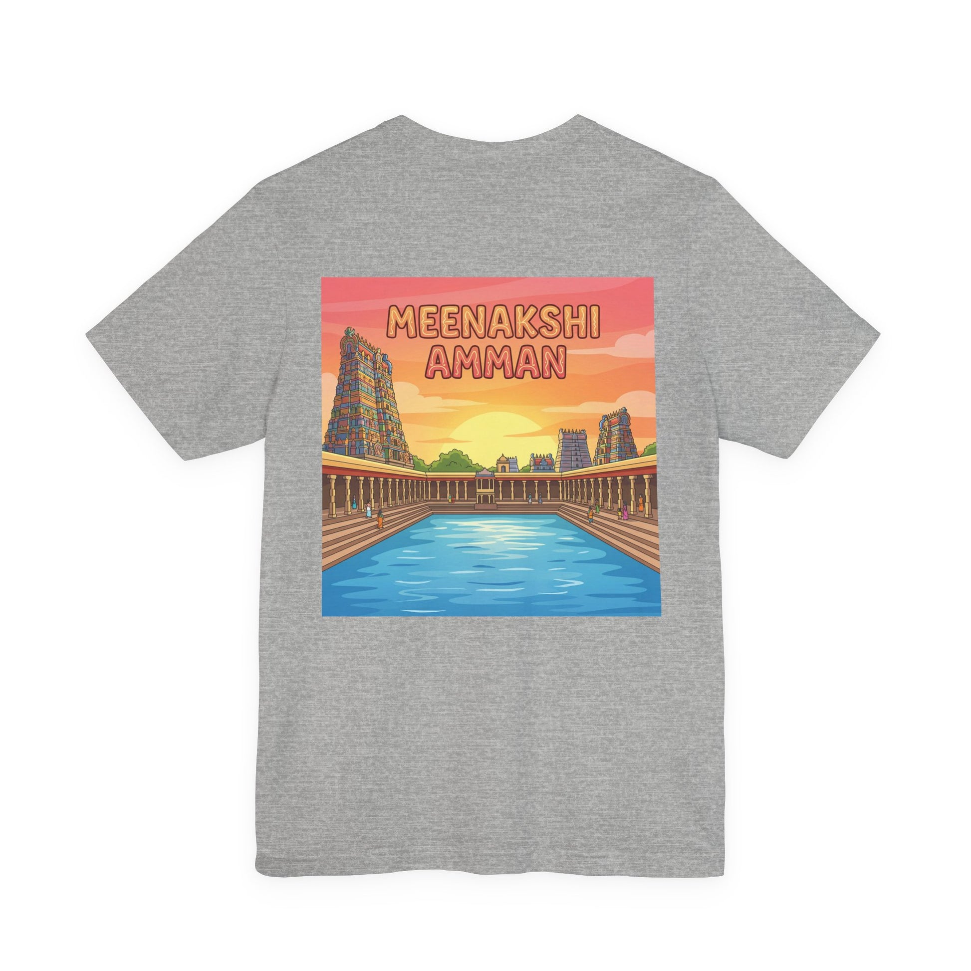 Celebrate the vibrant beauty of South Indian temple architecture with this Meenakshi Amman T-Shirt featuring a striking back print inspired by the colorful towers and intricate details of Meenakshi Amman Temple. Perfect for travelers, culture enthusiasts, and admirers of historic landmarks.