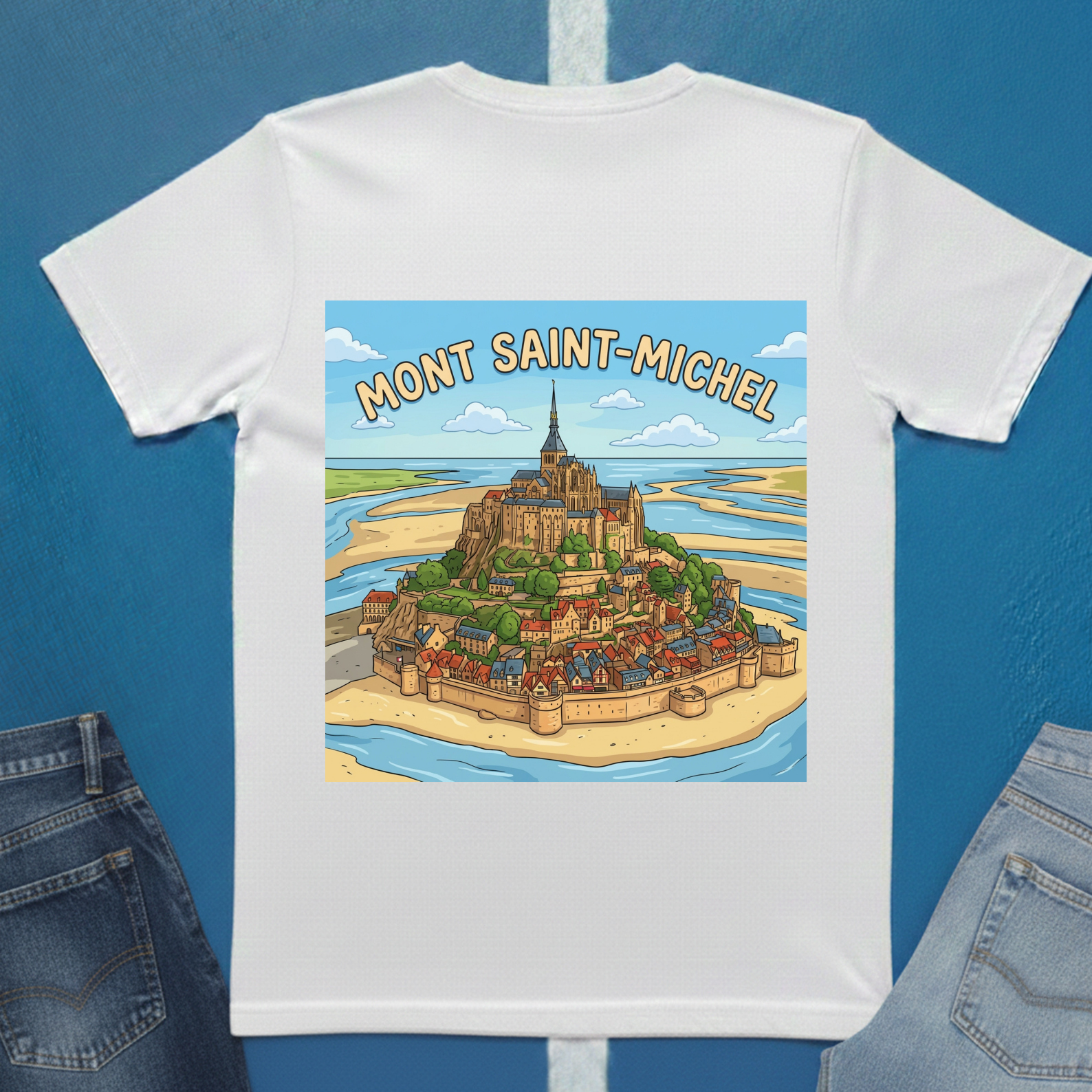 Celebrate the enchanting beauty of France with this Mont Saint-Michel Island T-Shirt featuring a striking back print inspired by the iconic Mont Saint-Michel. Perfect for travelers, history lovers, and admirers of picturesque landmarks.