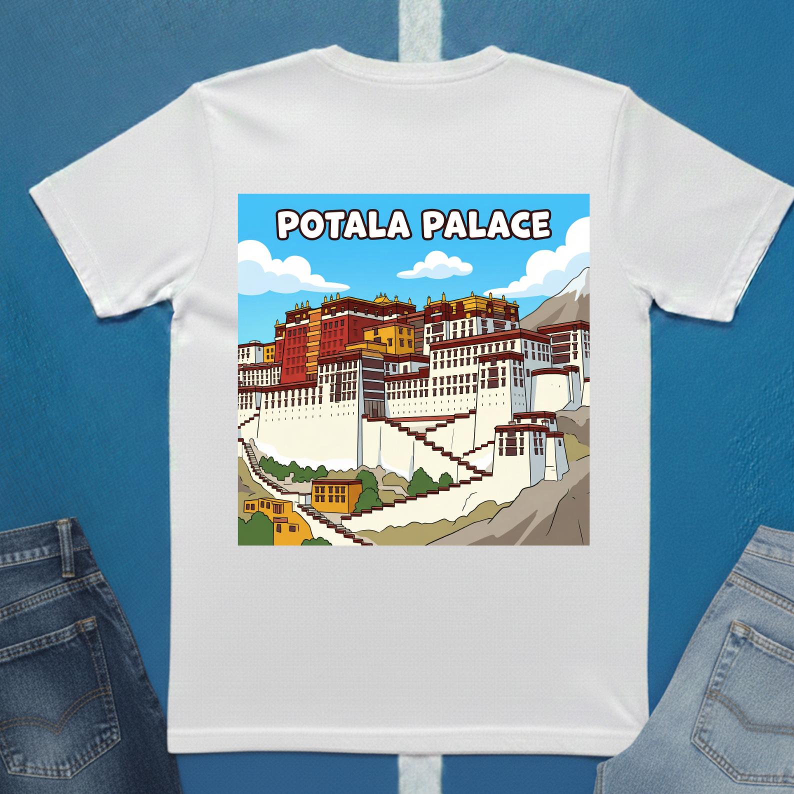 Celebrate the majestic heritage of Tibet with this Potala Palace T-Shirt featuring a striking back print inspired by the iconic palace in Lhasa. Perfect for travelers, history enthusiasts, and admirers of cultural landmarks, this design captures the grandeur and spiritual significance of the Potala Palace.