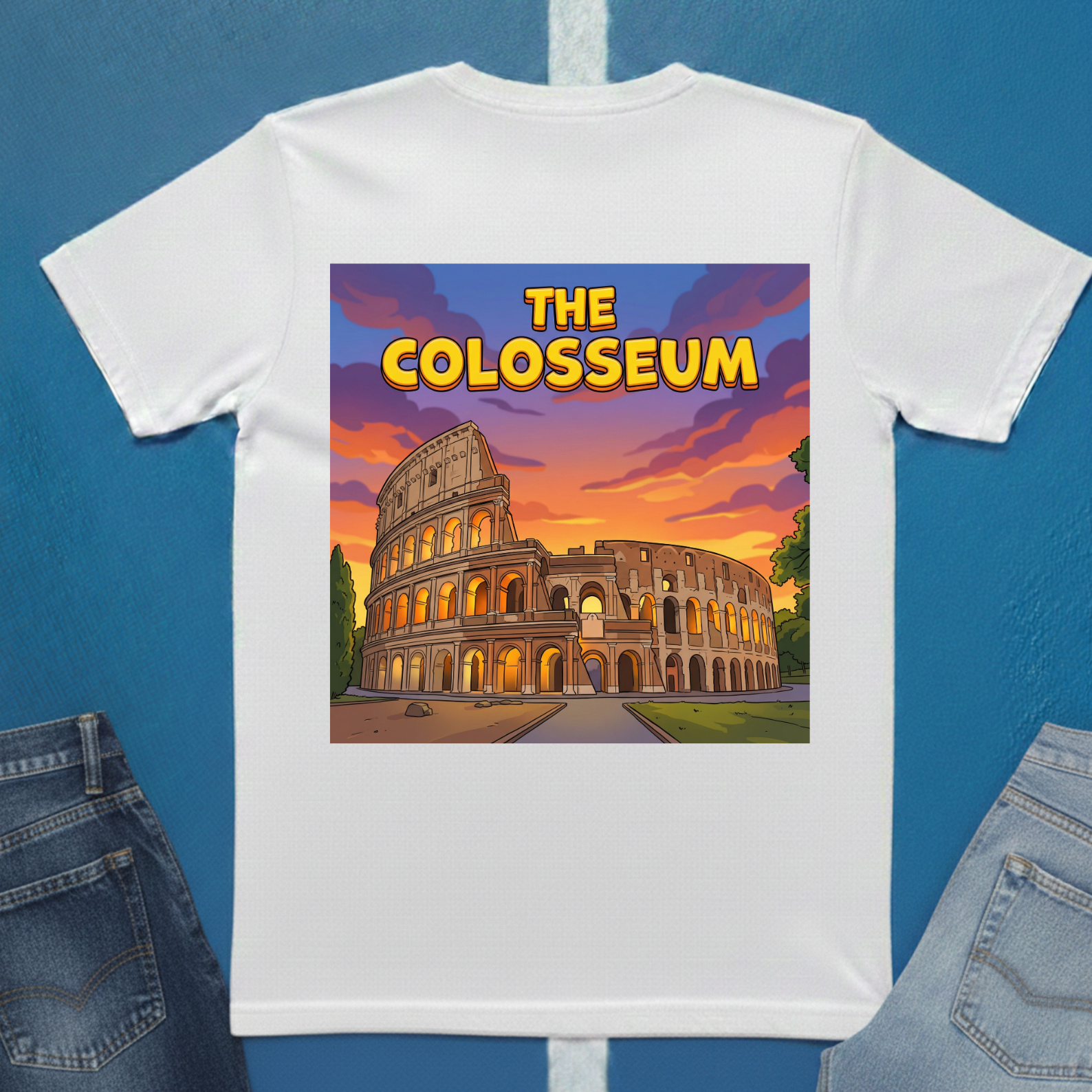 Celebrate the grandeur of ancient Rome with this Colosseum Amphitheatre T-Shirt featuring a striking back print inspired by the iconic Colosseum. Perfect for history enthusiasts, travelers, and admirers of legendary architectural masterpieces.